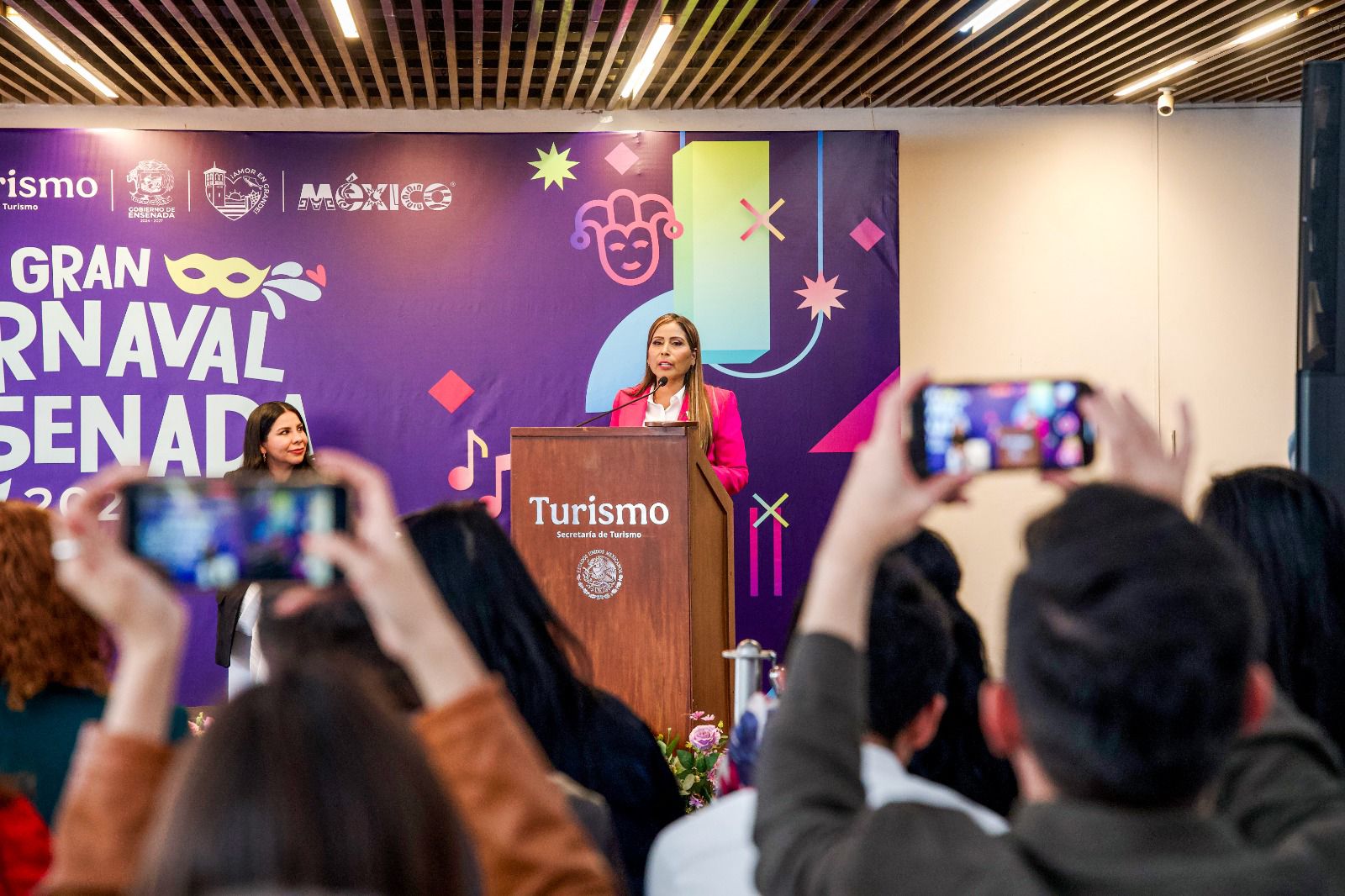 Durante una conferencia de prensa realizada en Punto México, sede de la Secretaría de Turismo federal en la capital del país, la presidenta municipal de Ensenada, Claudia Agatón Muñiz, presentó los detalles de la edición 2026 del carnaval, que se celebrará del 12 al 17 de marzo y que contempla desfiles, conciertos gratuitos y diversas actividades culturales a lo largo del puerto bajacaliforniano.