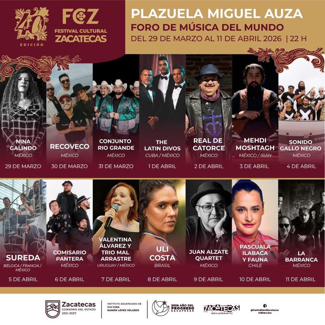 El gobernador de David Monreal Ávila lanzó la invitación a disfrutar del 40 Festival Cultural Zacatecas 2026, uno de los encuentros artísticos más relevantes del país, que se llevará a cabo del 29 de marzo al 11 de abril en el corazón de la capital zacatecana.